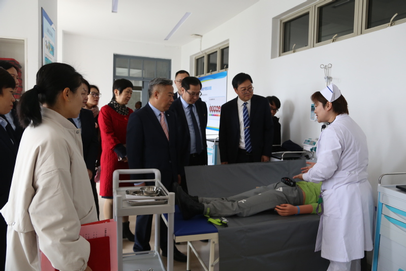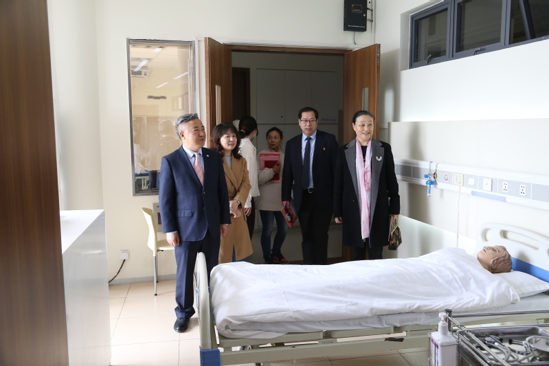 簽約儀式后,張建國院長一行參觀了公共衛(wèi)生與護(hù)理學(xué)院實(shí)訓(xùn)中心,重點(diǎn)參觀了重癥監(jiān)護(hù)實(shí)訓(xùn)室、外科仿真實(shí)訓(xùn)室、急救實(shí)訓(xùn)室、健康照護(hù)實(shí)訓(xùn)室、母嬰實(shí)訓(xùn)室等特色實(shí)訓(xùn)室的儀器設(shè)備和實(shí)訓(xùn)項(xiàng)目。