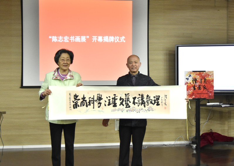 震旦教育集團(tuán)創(chuàng)始人、震旦教育發(fā)展基金會(huì)理事長(zhǎng)張惠莉與著名海派書畫家陳志宏共同為“陳志宏書畫展”揭幕。