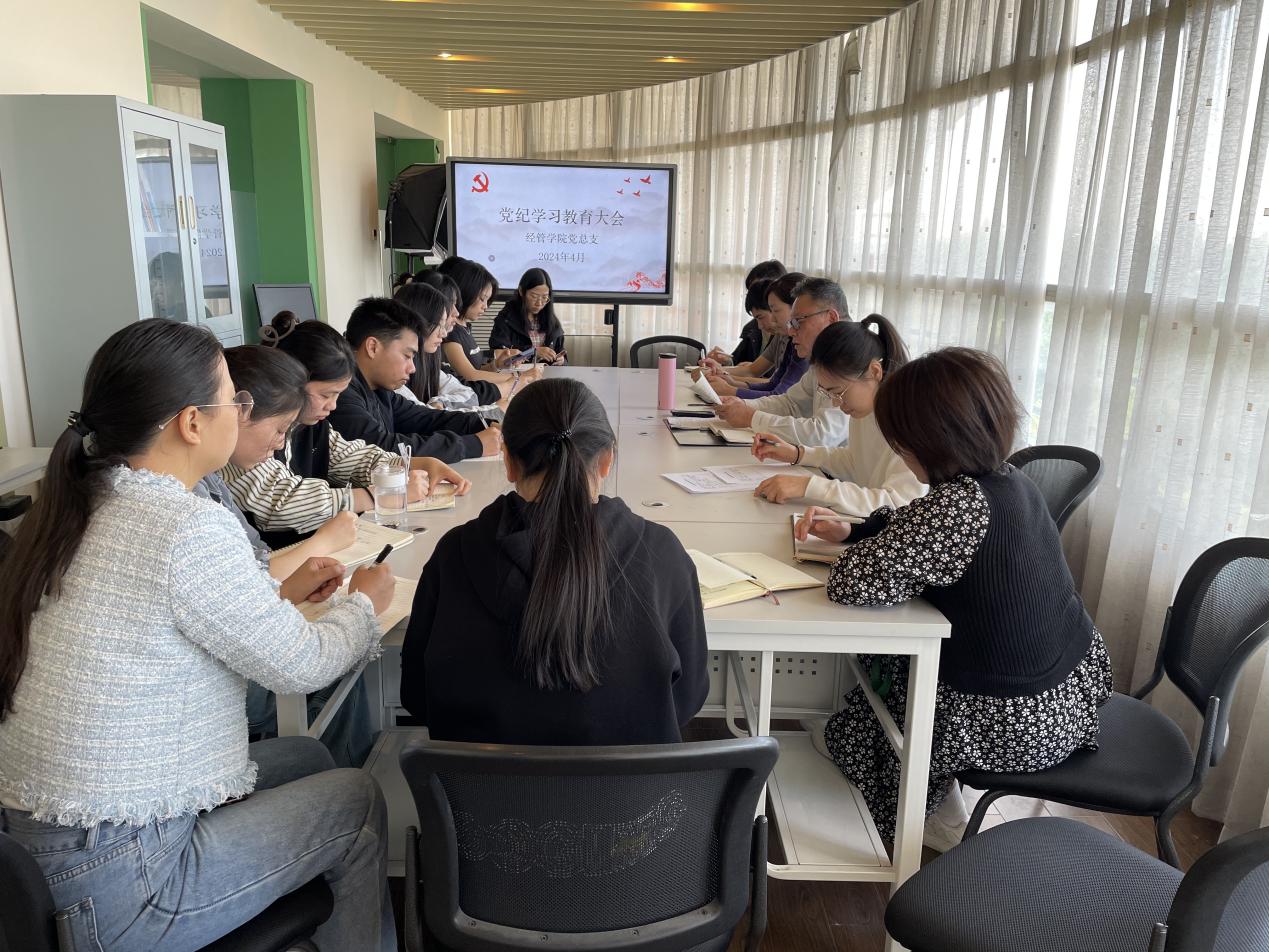 會上,沈宇光副書記傳達了學校黨紀學習教育工作要求,并對學院的黨紀學習教育工作進行部署。他強調,在黨紀學習教育中,要提高政治站位,深刻認識開展黨紀學習教育的重要意義,要把開展黨紀學習教育作為當前一項重要的政治任務來抓,堅持問題導向,高標準、高質量開展好黨紀學習教育。沈書記帶頭示范,引領學習了《中國共產黨紀律處分條例》總則、第一章和第二章,要求全體黨員以高度的政治自覺加強對黨紀的學習和遵守,并落實到具體工作中去。