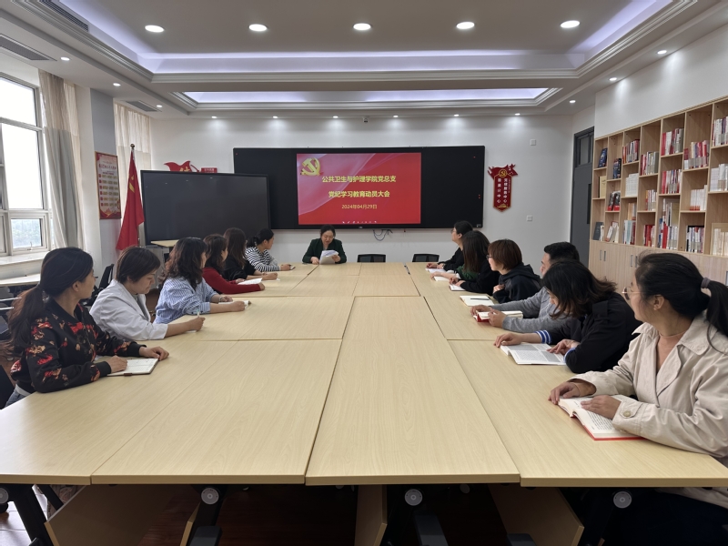 4月29日中午,公共衛(wèi)生與護理學院黨總支召開黨紀學習教育動員大會,學院全體師生黨員參會。會議由學院黨總支書記王璐主持。
