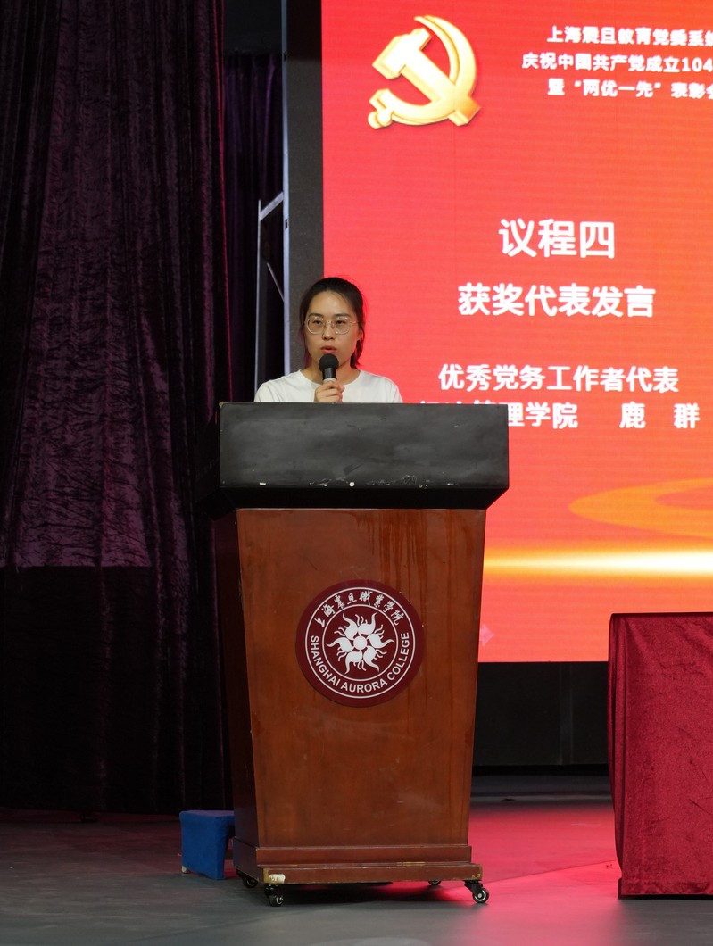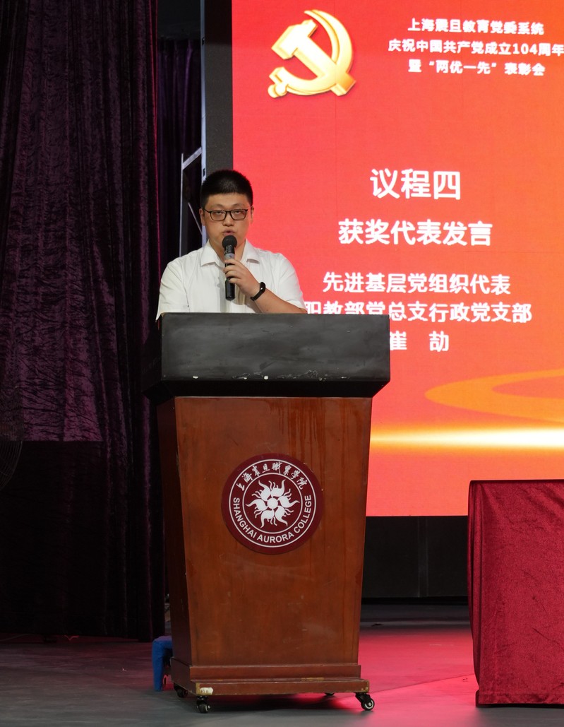 7月4日下午,上海震旦教育黨委系統(tǒng)慶祝中國共產(chǎn)黨成立104周年暨“兩優(yōu)一先”表彰會(huì)在上海震旦職業(yè)學(xué)院大禮堂隆重召開。震旦教育創(chuàng)始人、震旦教育發(fā)展基金會(huì)理事長、黨委委員張惠莉,震旦教育集團(tuán)董事長張沈,上海震旦職業(yè)學(xué)院黨委書記吳松,黨委副書記、紀(jì)委書記黃敏,黨委委員、副校長王純玉等領(lǐng)導(dǎo)出席大會(huì)。全體黨員、“光榮在黨50年”老黨員代表以及師生代表齊聚一堂,共同回顧黨的光輝歷程,表彰先進(jìn)典型,汲取奮進(jìn)力量。會(huì)議由黃敏主持。