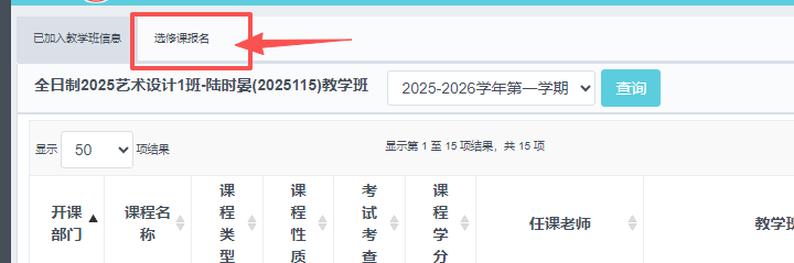 9.點擊“查詢”按鈕,確認是否已經(jīng)加入教學班