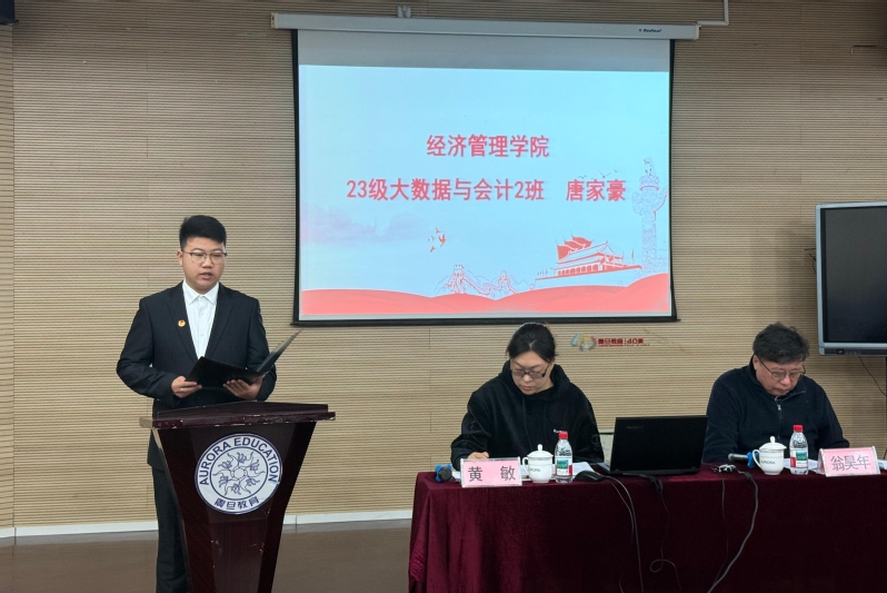 經(jīng)濟(jì)管理學(xué)院23級大數(shù)據(jù)與會(huì)計(jì)2班唐家豪作為培訓(xùn)班學(xué)員代表發(fā)言。他表示,成為發(fā)展對象是黨組織的認(rèn)可,將以黨員標(biāo)準(zhǔn)要求自己,并倡議全體學(xué)員珍惜機(jī)會(huì)、嚴(yán)守紀(jì)律、知行合一,結(jié)合專業(yè)錘煉本領(lǐng),助力國家發(fā)展。
