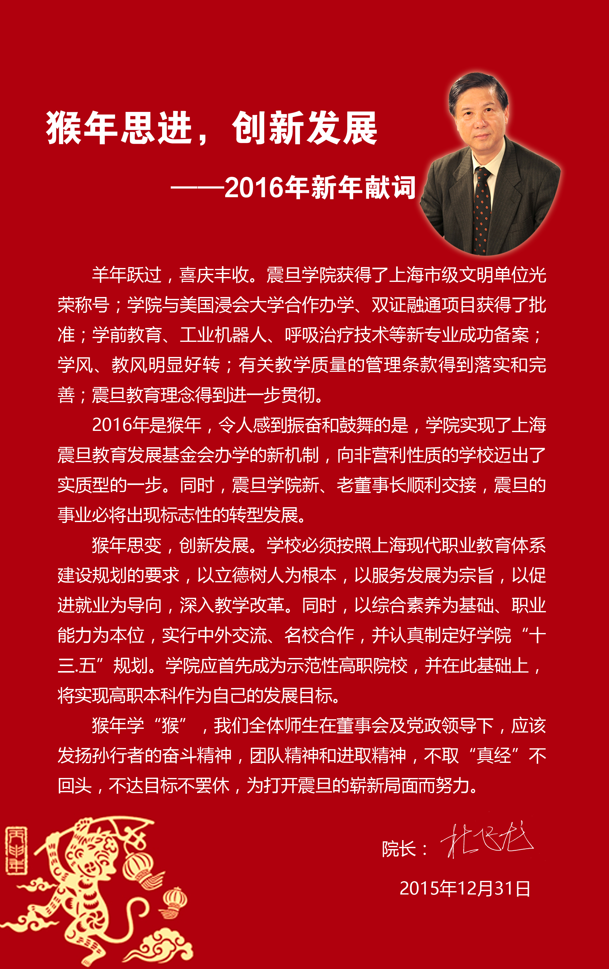 猴年思進,創(chuàng)新發(fā)展——2016年新年獻詞